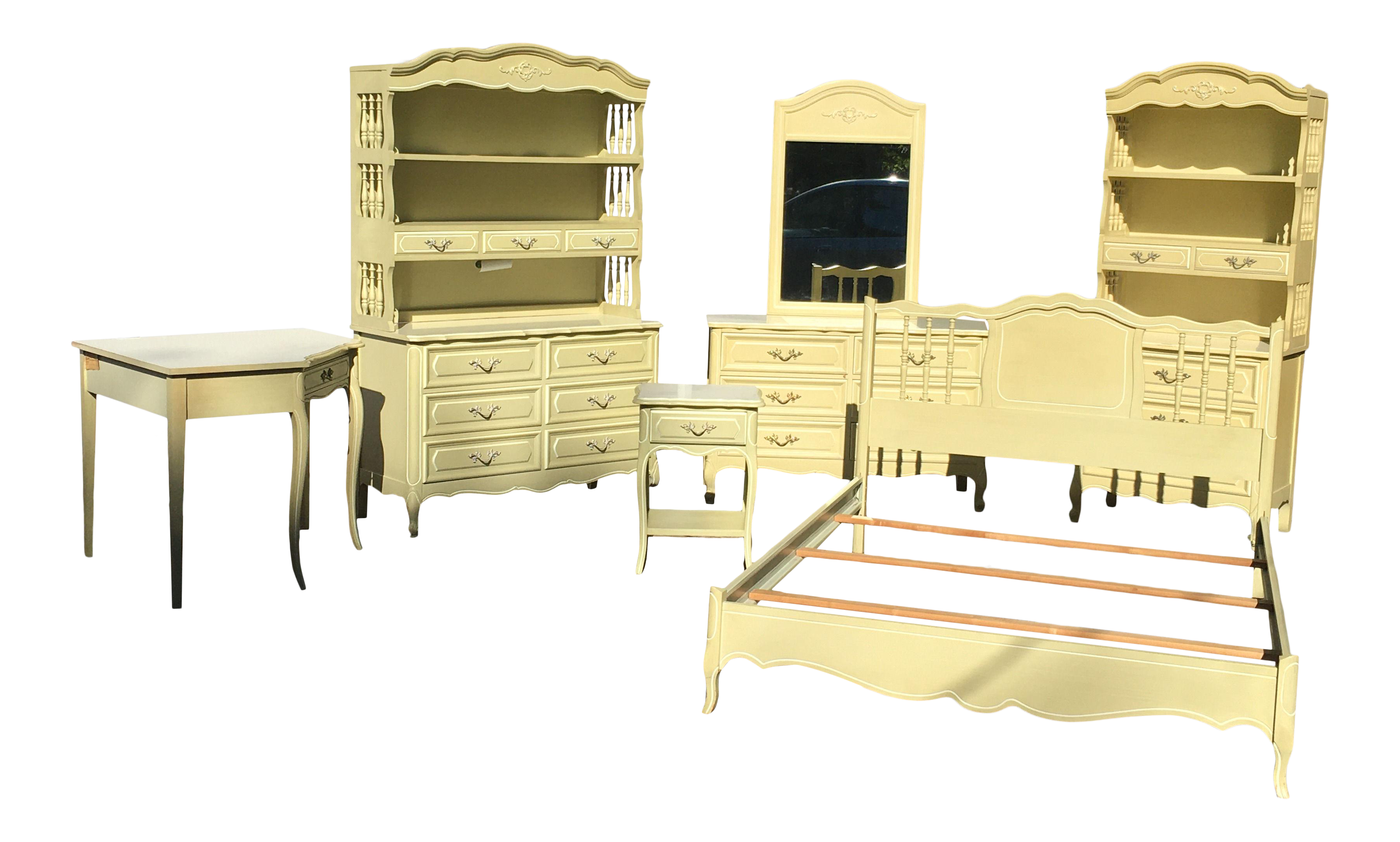 Drexel heritage vintage french provincial dresser with mirror 9 drawers. A stunning and beautiful collection of a wide range of french provencal and french country furniture, french armoire beds dressers commodes french silve leaf furniture vanity tables french kitchen furniture french bedroom furniture and more, view our custom window treatments also available in many different styles and fabrics. French provincial furniture custom painted and bedroom super picture theme awesome french inspiration the salvaged boutique is hired to custom paint a gorgeous french provincial furniture bedroom set the set painted distressed in smokey grey chalk with crisp white pulls bedrooms are well known for. Americanlisted features safe and local classifieds for everything you need! Solid wood french provincial style round tables. Can be used as night stands or side tables. This beautiful french provincial bedroom design features an alluring gold gilded bed frame and head board. Browse search results for french provincial bedroom furniture furniture for sale in usa. Wonderful french country style bedroom furniture of white finished wood. Bed frame (size full), two bedside tables, mirror with wood frame, and one drawer dresser. Pine antique beds & bedroom sets. This was my grandparents and i used it for 20+ years. French provincial vintage bedroom furniture desk hutch bookcase bonnet 70s.